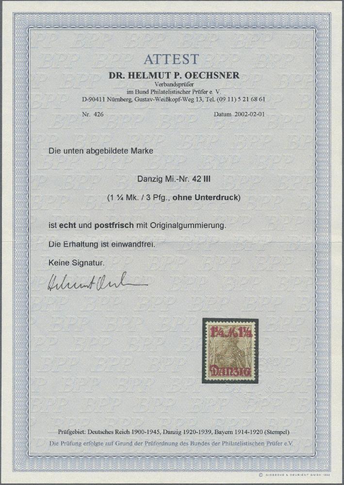 | Prüfer: | Oechsner, Helmut (BPP (Bund Philatelistischer Prüfer)) |