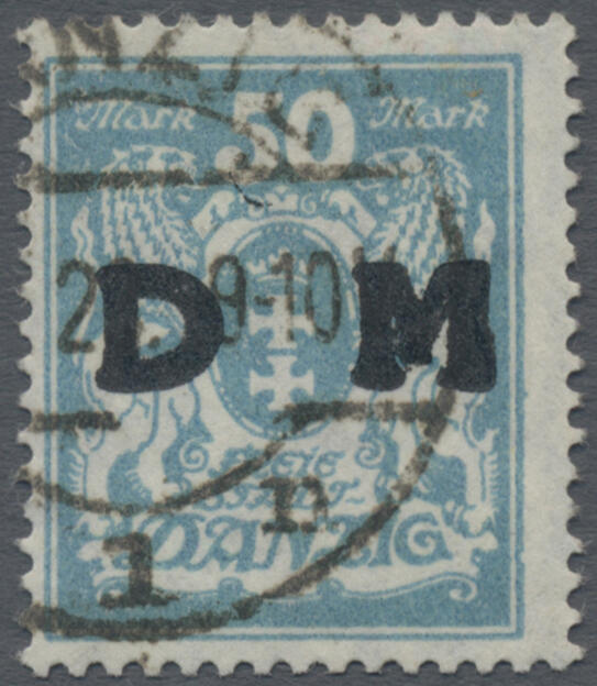 | Zusatzinformationen und Suchstichworte: | Christoph Gärtner 56. Auktion 12. - 16. Juni 2023 Los 5530 D Danzig 1923, Staatswappen, mittelgrünlichblau mit Aufdruck "D M", zeitgerecht entwertet "(DA)NZIG (*) 1 n (.).23. 9-10V", "echt und in einwandfreier Qualität", Fotoattest Gruber BPP (Mi€1.900,-). Ausruf 500,00 EUR |