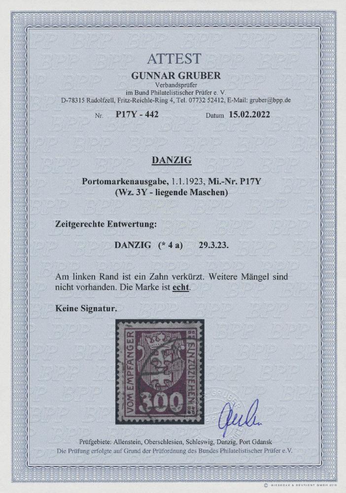 | Prüfgebiet: | Danzig Portomarken |