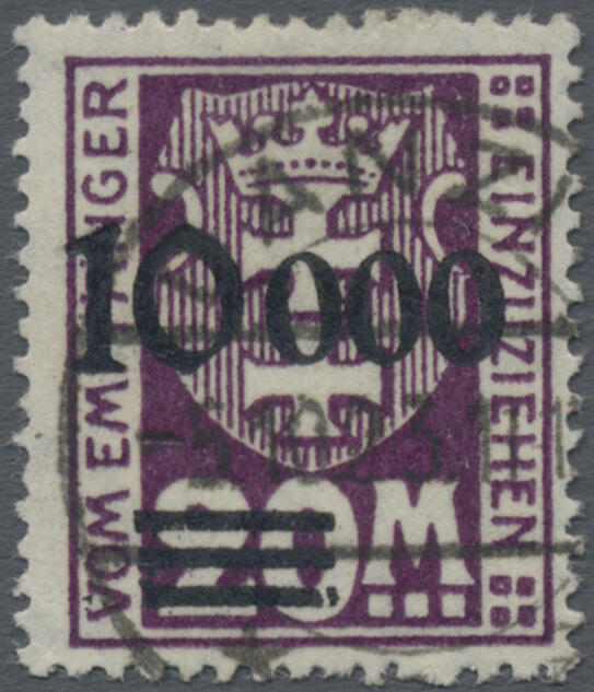 | Zusatzinformationen und Suchstichworte: | Christoph Gärtner 56. Auktion 12. - 16. Juni 2023 Los 5535 D Danzig 1923, 10.000 auf 20 M. dunkel(violett)purpur mit glänzendem Aufdruck, zeitgerecht entwertet "DANZI(G) * (1 z) -5.10.23. 11-12V.", "echt und einwandfrei" Ausruf 450,00 EUR |