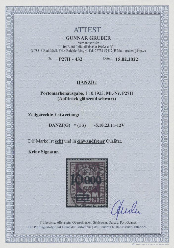 | Prüfer: | Gruber, Gunnar (BPP (Bund Philatelistischer Prüfer)) |