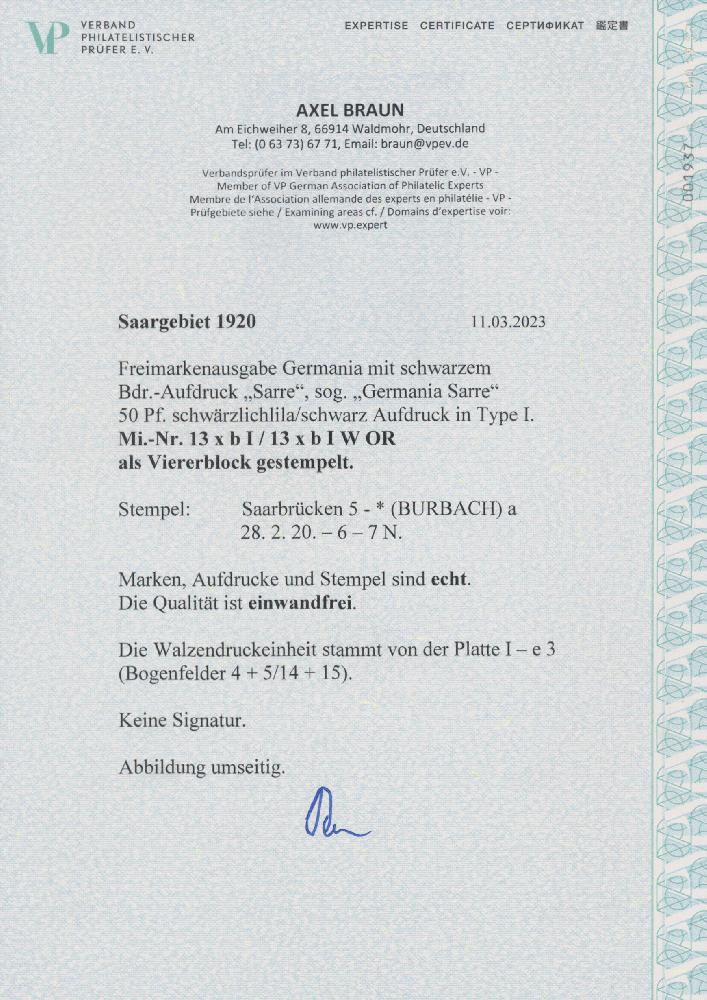 | Prüfgebiet: | Saargebiet (Mi-Nr. 1 - 205) |