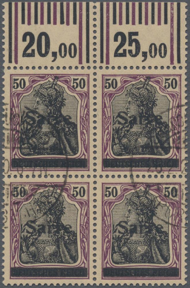 | Zusatzinformationen und Suchstichworte: | Christoph Gärtner 56. Auktion 12. - 16. Juni 2023 Los 5432 D Saar 1920, Germania 50 Pf schwärzlichlila/schwarz mit Aufdruck in Type I, sauber entwerteter Viererblock vom Walzen-Oberrand. Nicht vorgefaltet und nicht angetrennt, mit Originalgummierung. Aktuelles Foto-Attest Braun, VP(3/2023): "echt und einwandfrei". (Mi. 680,- €) Zuschlag 135,00 EUR |