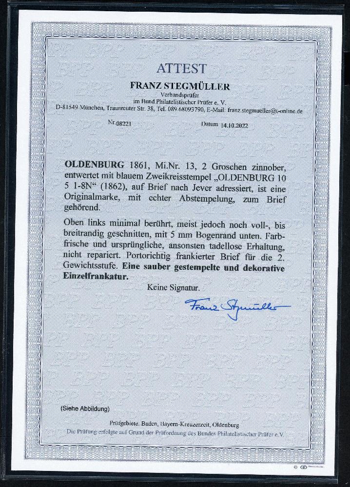 | Prüfer: | Stegmüller, Franz (BPP (Bund Philatelistischer Prüfer)) |
