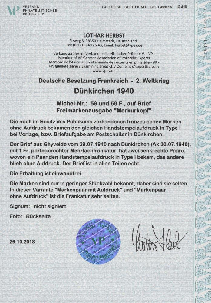 | Prüfgebiet: | Deutsche Besetzung WK 2 Frankreich Dünkirchen |