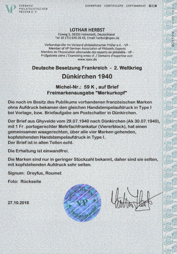 | Prüfgebiet: | Deutsche Besetzung WK 2 Frankreich Dünkirchen |