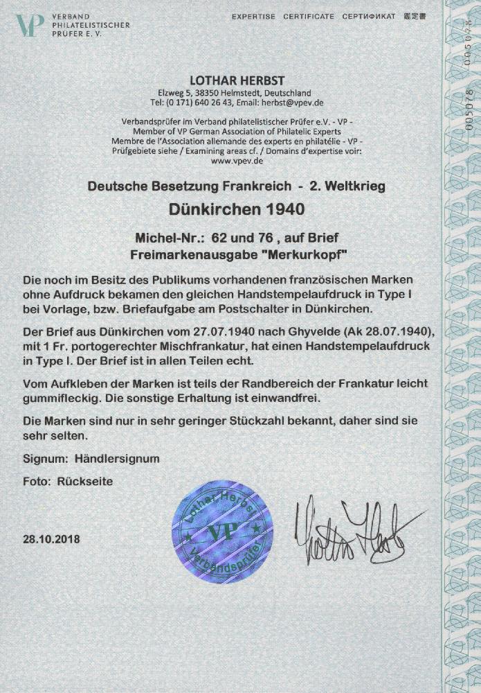 | Prüfgebiet: | Deutsche Besetzung WK 2 Frankreich Dünkirchen |