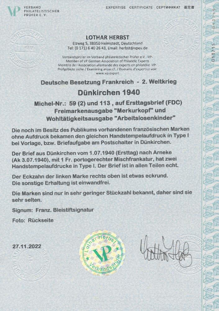 | Prüfgebiet: | Deutsche Besetzung WK 2 Frankreich Dünkirchen |