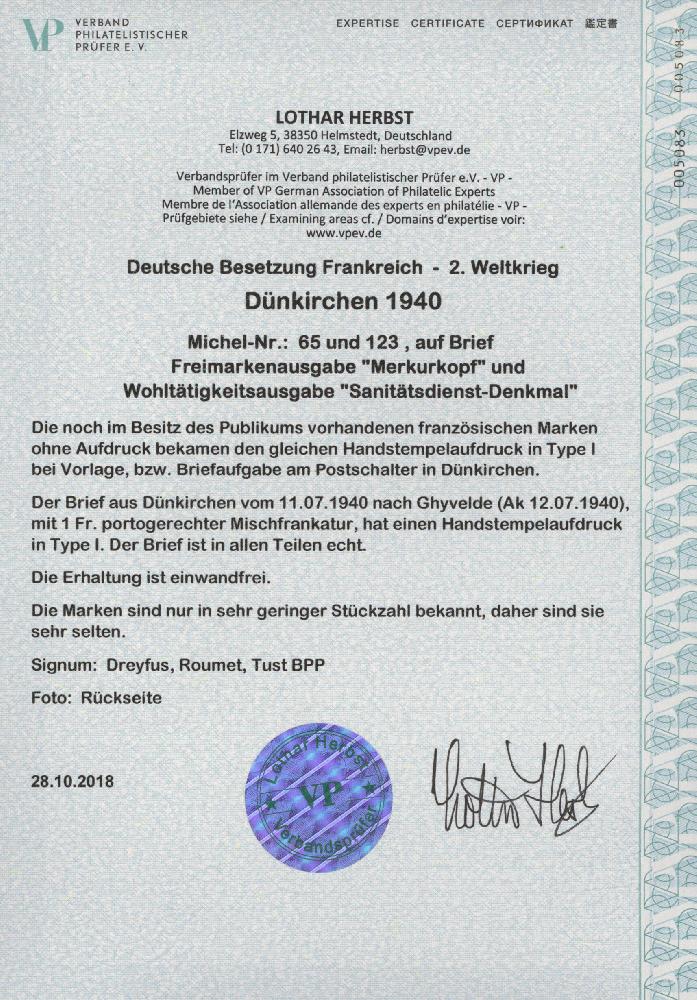 | Prüfgebiet: | Deutsche Besetzung WK 2 Frankreich Dünkirchen |