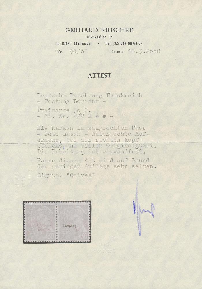 | Prüfgebiet: | Deutsche Besetzung WK 2 Frankreich Lorient |