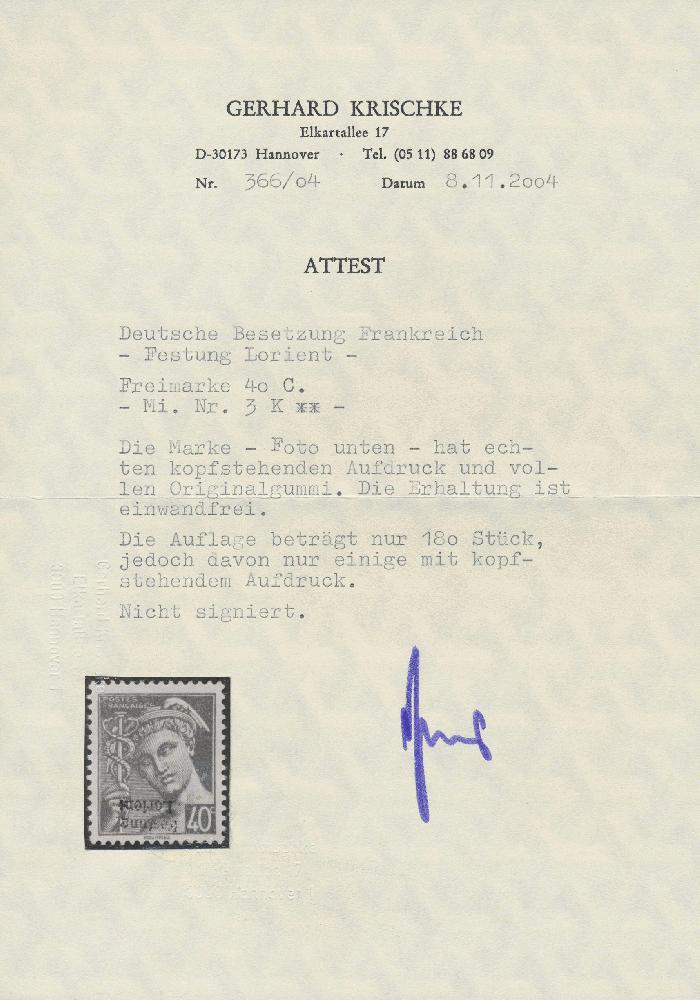 | Prüfgebiet: | Deutsche Besetzung WK 2 Frankreich Lorient |
