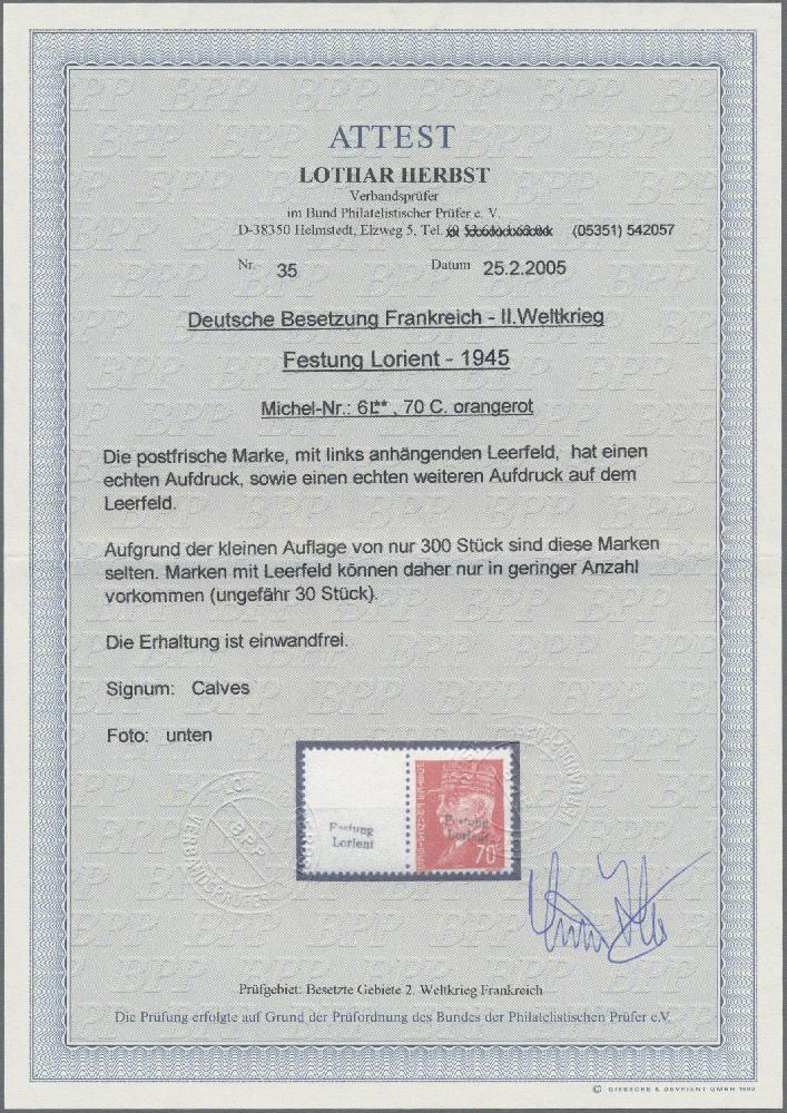 | Prüfer: | Herbst, Lothar (BPP (Bund Philatelistischer Prüfer)) |