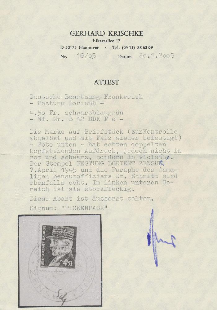 | Prüfgebiet: | Deutsche Besetzung WK 2 Frankreich Lorient |