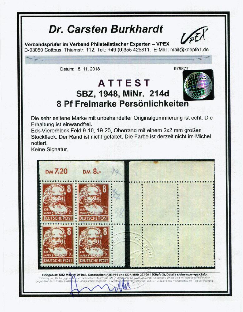 | Prüfer: | Burkhardt, Carsten (VPEX (Verband Philatelistischer Experten)) |