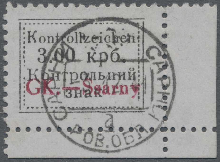 | Zusatzinformationen und Suchstichworte: | Christoph Gärtner 56. Auktion 12. - 16. Juni 2023 Los 5705 D Deutsche Besetzung II. WK Ukraine Sarny 1941. Kontrollzeichen 3.00 Krb "GK.-Ssarny", gestempelt, rechte untere Bogenecke, Attest Zirath BPP "Feld 25 ist echt, Stempel ist echt. Die Erhaltung ist einwandfrei." (Mi. 450,- Euro) Ausruf 100,00 EUR |