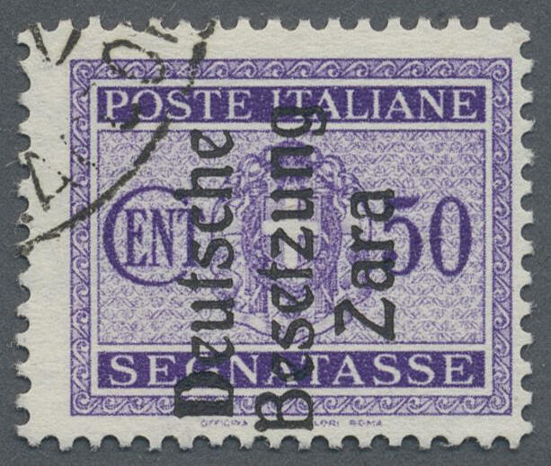 | Zusatzinformationen und Suchstichworte: | Christoph Gärtner 56. Auktion 12. - 16. Juni 2023 Los 5724 D Deutsche Besetzung II. WK Zara 1943, 50 C schwärzlichbläulichviolett, Aufdruck Type IV, entwertet mit echtem Teilstempel "(ZARA R)ACCO(M.ASSICURATE)", tadellose Erhaltung. Die Auflage dieser Marke in Type IV beträgt nur 50 Stück! Ausruf 220,00 EUR |