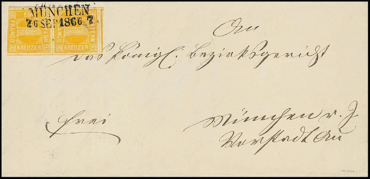 | Zusatzinformationen und Suchstichworte: | Rauhut & Kruschel - 218. Auktion 10. Juni 2023 Los 194 Altdeutschland Bayern 1 Kr. gelborange im senkrechten Paar, obere Marke überrandig, untere unten angeschnitten, auf frischem Ortsbrief der 2. Gewichtsstufe mit L2 "München" Ausruf 80,00 EUR |