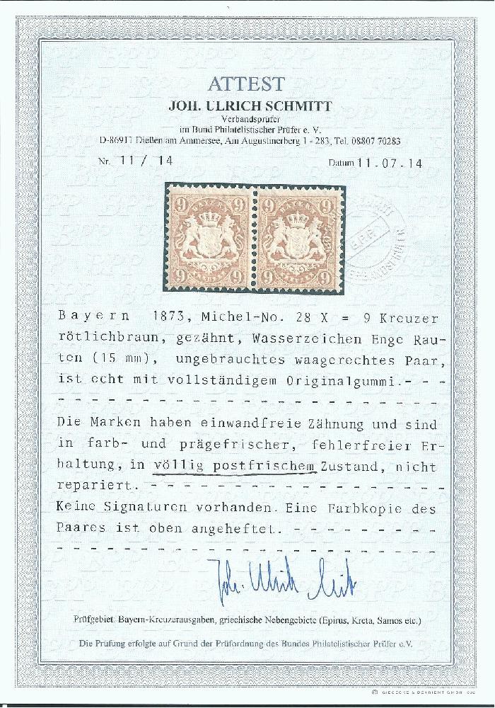 | Prüfer: | Schmitt, Joh. Ulrich (BPP (Bund Philatelistischer Prüfer)) |