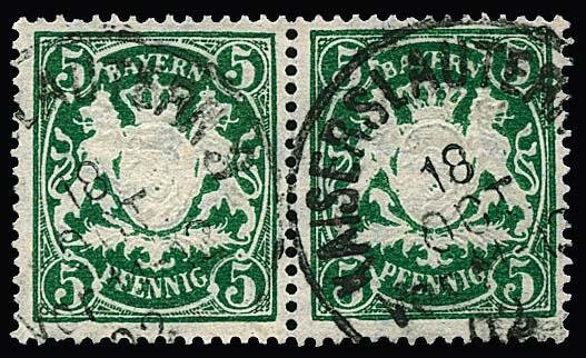 | Zusatzinformationen und Suchstichworte: | Rauhut & Kruschel - 218. Auktion 10. Juni 2023 Los 262 Altdeutschland Bayern 5 Pfg., seltene Wasserzeichen-Abart (mit Wz. "3") im Paar mit K1 von Kaiserslautern, linke Marke zwei kurze Zähnchen, rechte mittig hinterlegt, jedoch sind schon Paare dieser Marke von größter Seltenheit! Ausruf 180,00 EUR |
