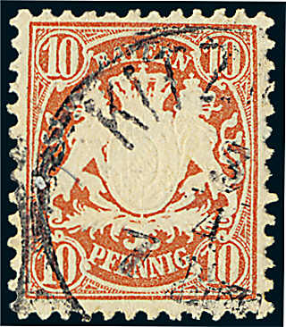 | Zusatzinformationen und Suchstichworte: | 114. Kirstein-Larisch Auktion 1. - 3. Juni 2023 Los 183 Altdeutschland Bayern BAYERN Ausgaben 1876/1911 10 Pf. mittellilarot, Prachtstück mit K1 "KITZ(INGEN) 3/4", Foto- Kurzbefund Sem Zuschlag 70,00 EUR |