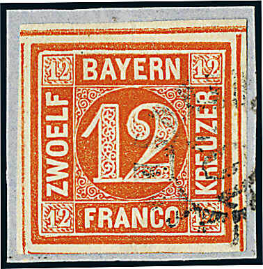 | Zusatzinformationen und Suchstichworte: | 114. Kirstein-Larisch Auktion 1. - 3. Juni 2023 Los 73 Altdeutschland Bayern 12 Kr. rot, farbfrisch u. alls. breitrandig (3 kpl. SL), Kab.- Wert v. Oberrand mit zartem gMR "101" (Edenkoben) auf Briefstück, gepr. Brettl, Foto- Kurzbefund Sem Zuschlag 42,00 EUR |