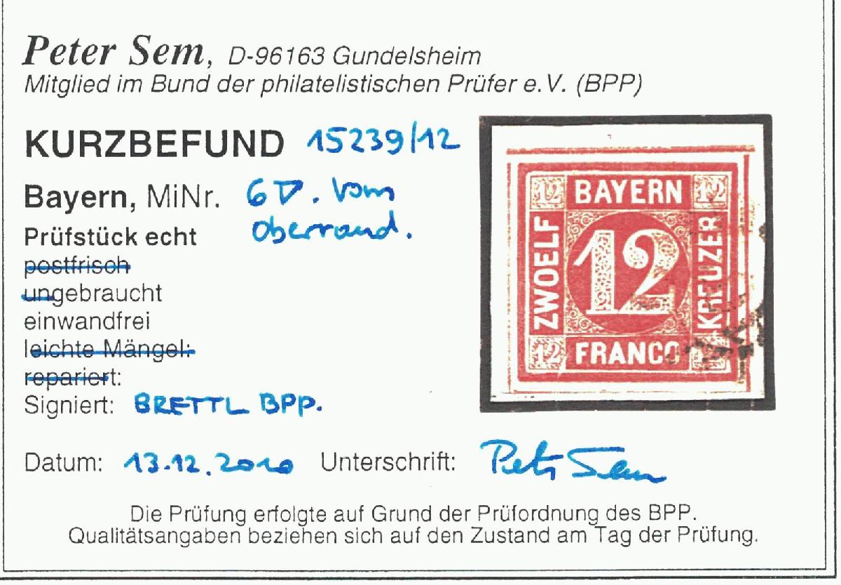 | Prüfer: | Sem, Peter (BPP (Bund Philatelistischer Prüfer)) |