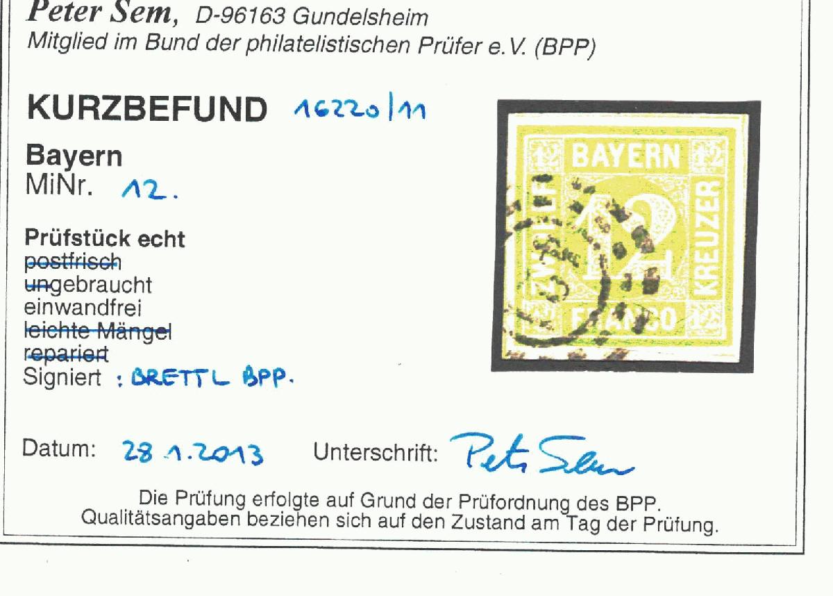 | Prüfer: | Sem, Peter (BPP (Bund Philatelistischer Prüfer)) |