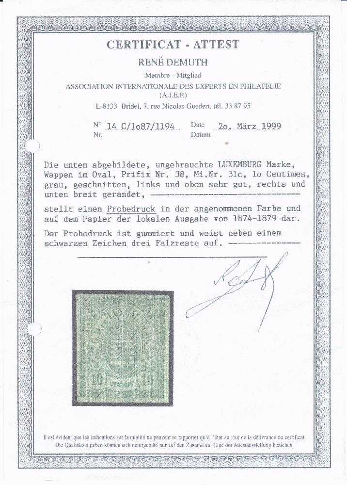 | Prüfer: | Demuth, René (AIEP (Association internationale des experts en philatélie)) |