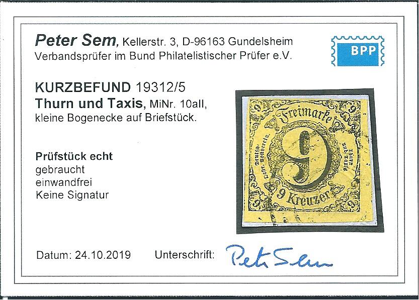 | Prüfgebiet: | Altdeutschland Thurn und Taxis |