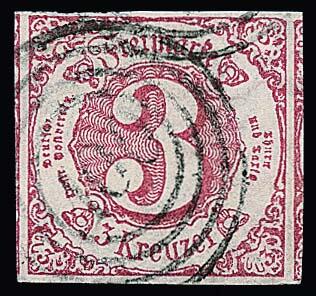 | Zusatzinformationen und Suchstichworte: | Rauhut & Kruschel - 218. Auktion 10. Juni 2023 Los 1402 Altdeutschland Thurn und Taxis 3 Kr. karminrosa, Kabinett-Schnittriese mit NS "100", breit- bis überrandig, zwei Seiten Nebenmarken Ausruf 35,00 EUR |