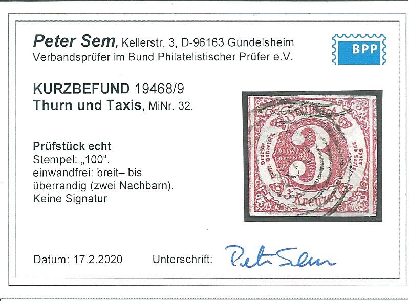 | Prüfgebiet: | Altdeutschland Thurn und Taxis |