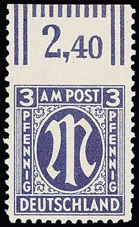 | Zusatzinformationen und Suchstichworte: | Rauhut & Kruschel - 218. Auktion 10. Juni 2023 Los 3198 Bizone 3 Pfg., Abart "oben ungezähnt" als postfrisches Oberrandstück Zuschlag 90,00 EUR |