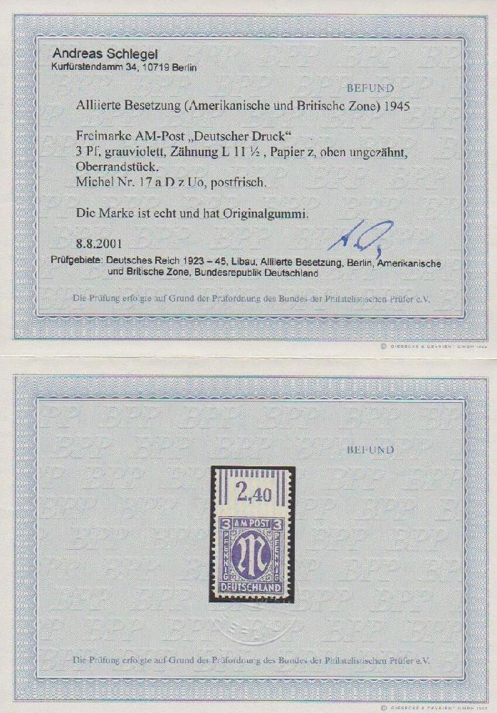 | Prüfer: | Schlegel, Andreas (BPP (Bund Philatelistischer Prüfer)) |