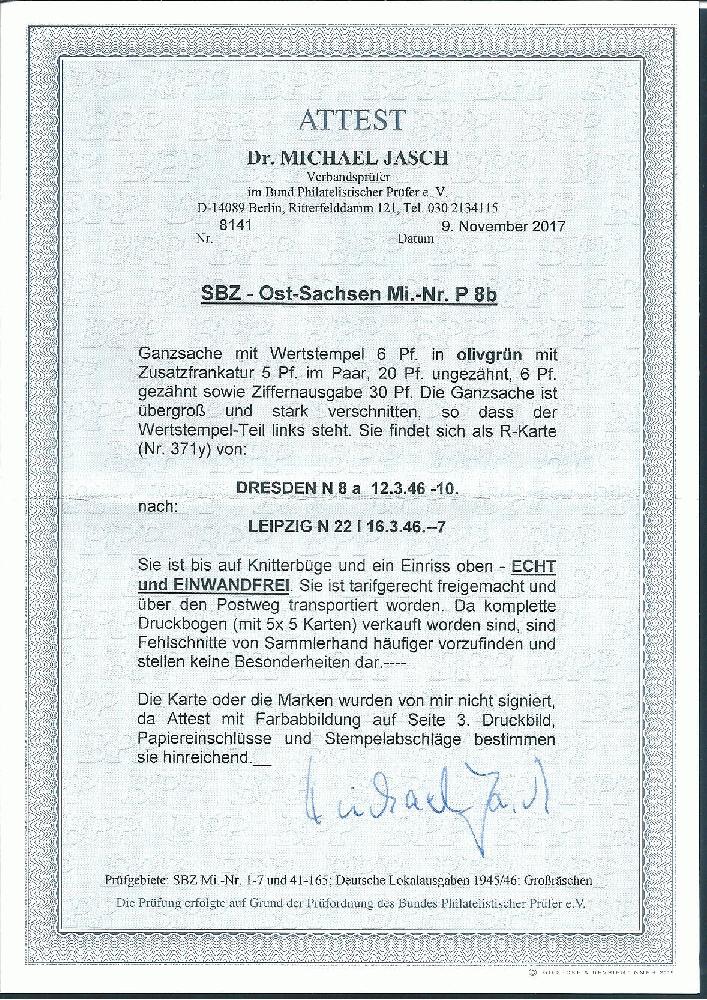 | Prüfgebiet: | Alliierte Besetzung SBZ Ost-Sachsen |
