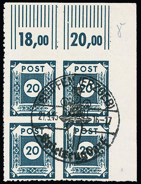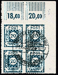| Zusatzinformationen und Suchstichworte: | Rauhut & Kruschel - 218. Auktion 10. Juni 2023 Los 2987 Sowjetische Zone 20 Pfg. mit Liniendurchstich von Seiffen im rundgestempelten Luxus-Viererblock aus der rechten oberen Bogenecke, Attest Ströh. Mi. lose 4000,- Ausruf 450,00 EUR |
