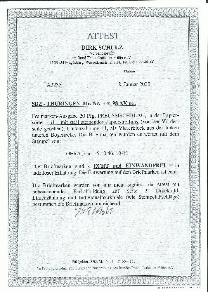 | Prüfgebiet: | Alliierte Besetzung SBZ Thüringen |