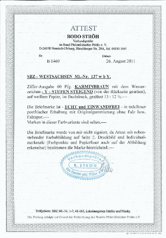 | Prüfer: | Ströh, Bodo (BPP (Bund Philatelistischer Prüfer)) |