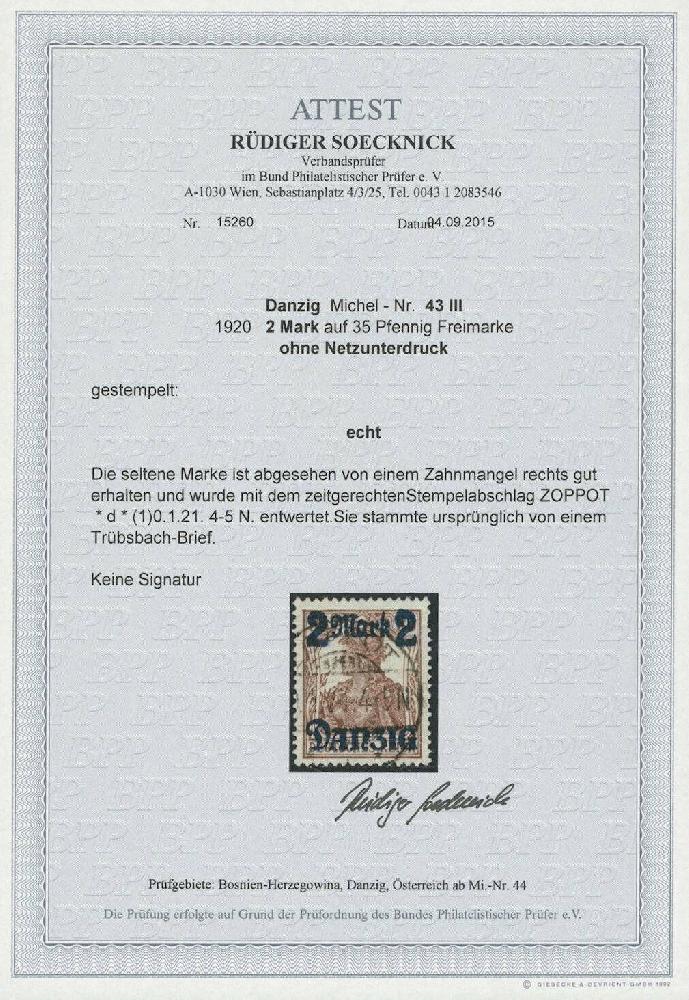 | Prüfer: | Soecknick, Rüdiger (BPP (Bund Philatelistischer Prüfer)) |