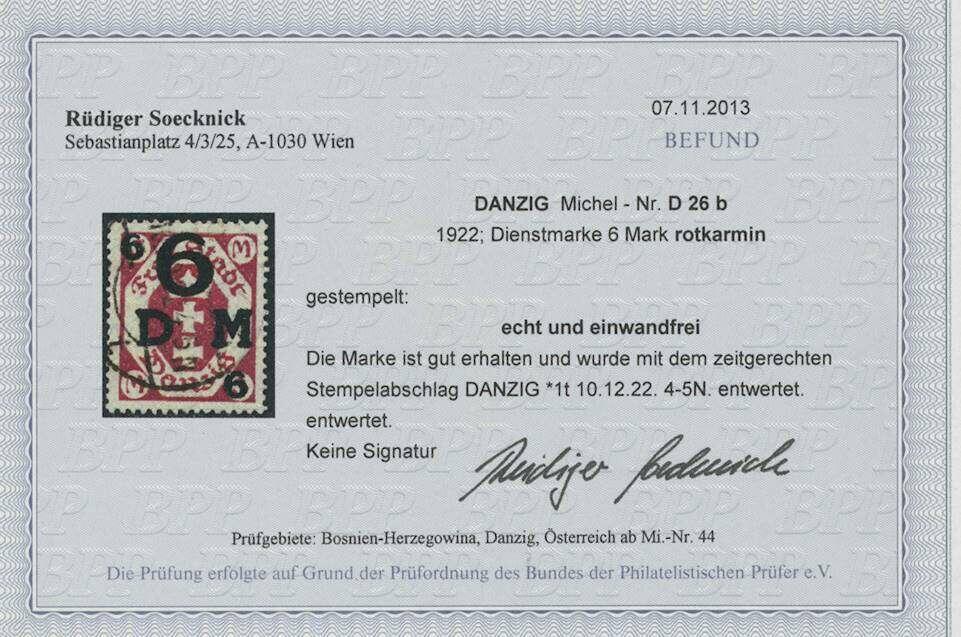 | Prüfer: | Soecknick, Rüdiger (BPP (Bund Philatelistischer Prüfer)) |