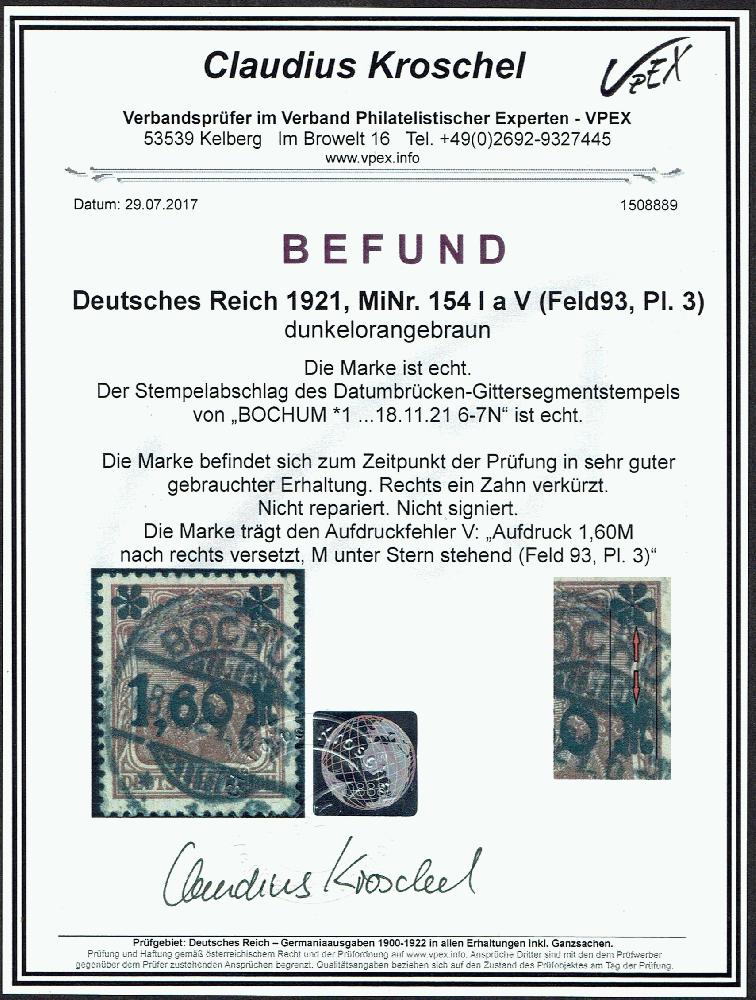 | Prüfgebiet: | Deutsches Reich 1919 - 1923 (Mi-Nr. 107 - 343) |