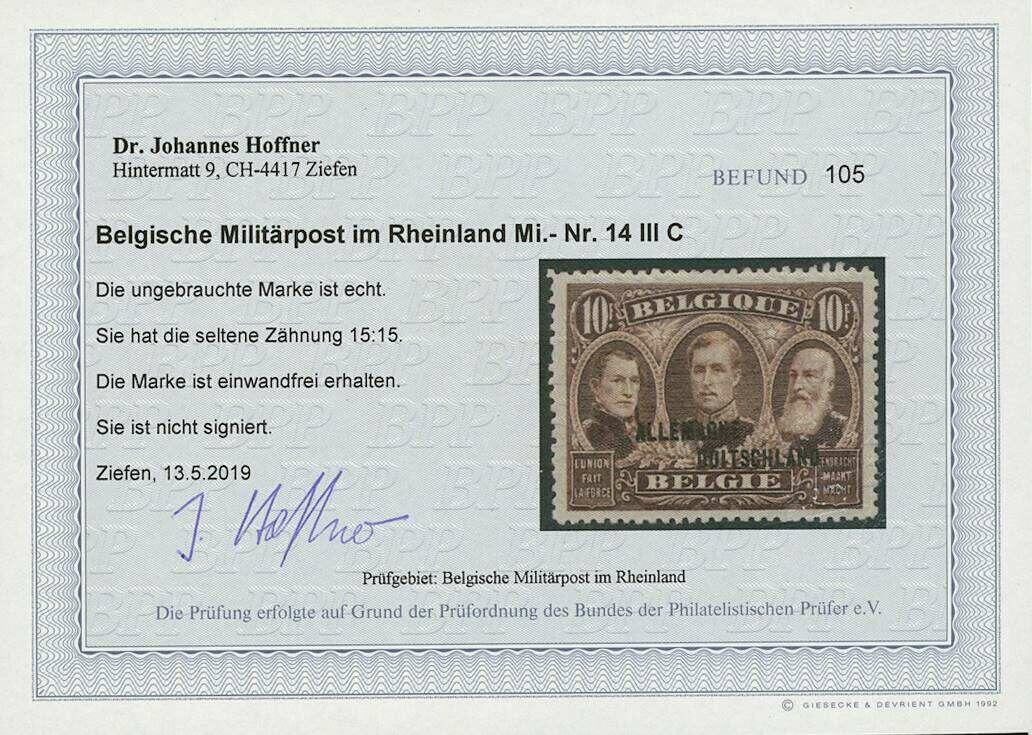 | Prüfgebiet: | Belgische Militärpost im Rheinland |