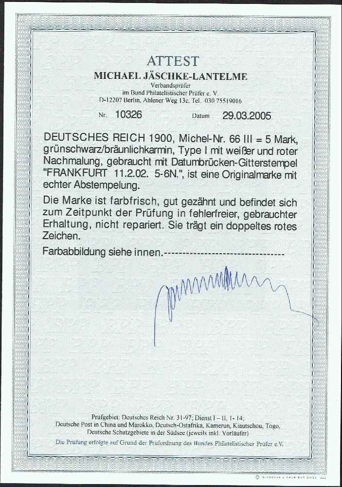 | Prüfgebiet: | Deutsches Reich 1871 - 1918 (Mi-Nr. 1 - 106) |