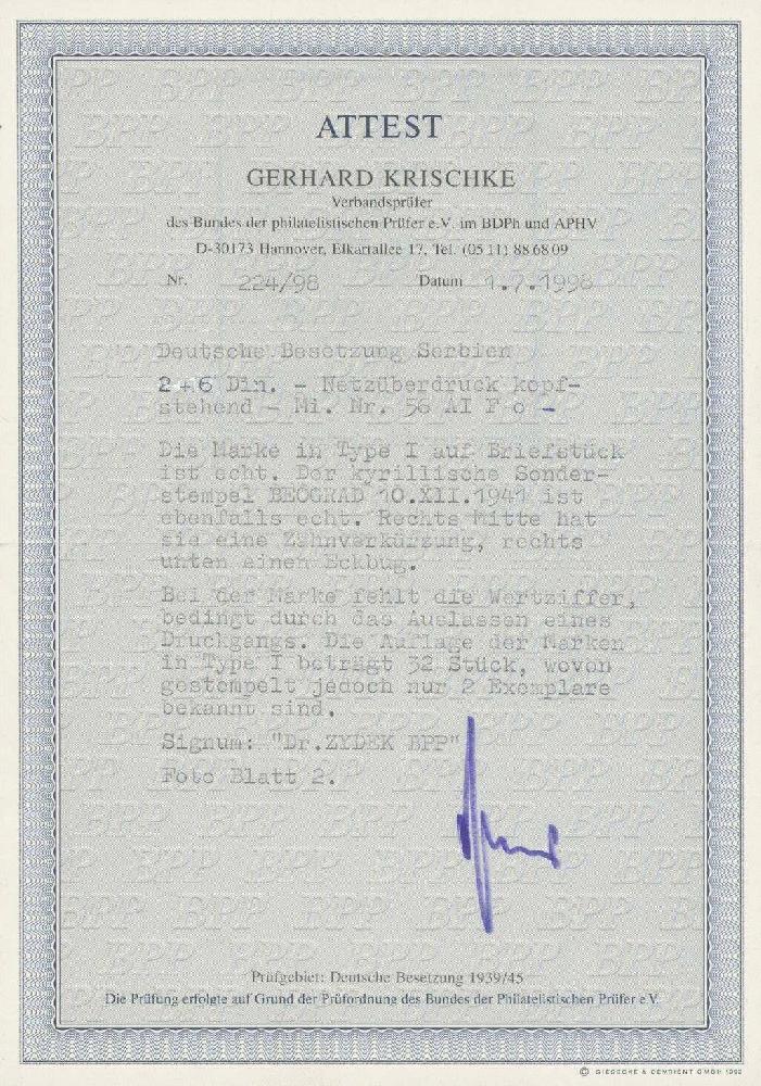 | Prüfgebiet: | Deutsche Besetzung WK 2 Serbien |