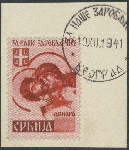 | Zusatzinformationen und Suchstichworte: | Ulrich Felzmann 178. Auktion 22. Juni 2023 Los 3430 Deutsche Besetzung II. WK Serbien 2 + 6 D Kriegsgefangene "Spitzen abwärts" ohne Werteindruck, mit klarem, zeitgerechtem Stempel BEOGRAD 10.XII.1941 auf attraktivem Briefstück in leicht bügiger, bedarfsmäßig gezähnter Prachterhaltung, doppelt sign. Zydek BPP sowie Fotoattest Krischke BPP "Die Auflage ... beträgt 32 Stück, wovon gestempelt jedoch nur 2 Exemplare bekannt sind" Ausruf 1.200,00 EUR |