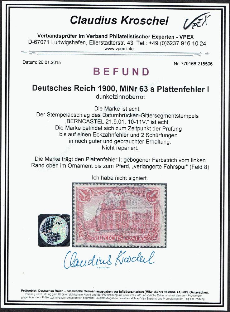 | Prüfer: | Kroschel, Claudius (VPEX (Verband Philatelistischer Experten)) |