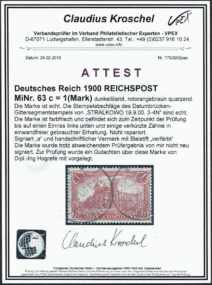 | Prüfer: | Kroschel, Claudius (VPEX (Verband Philatelistischer Experten)) |
