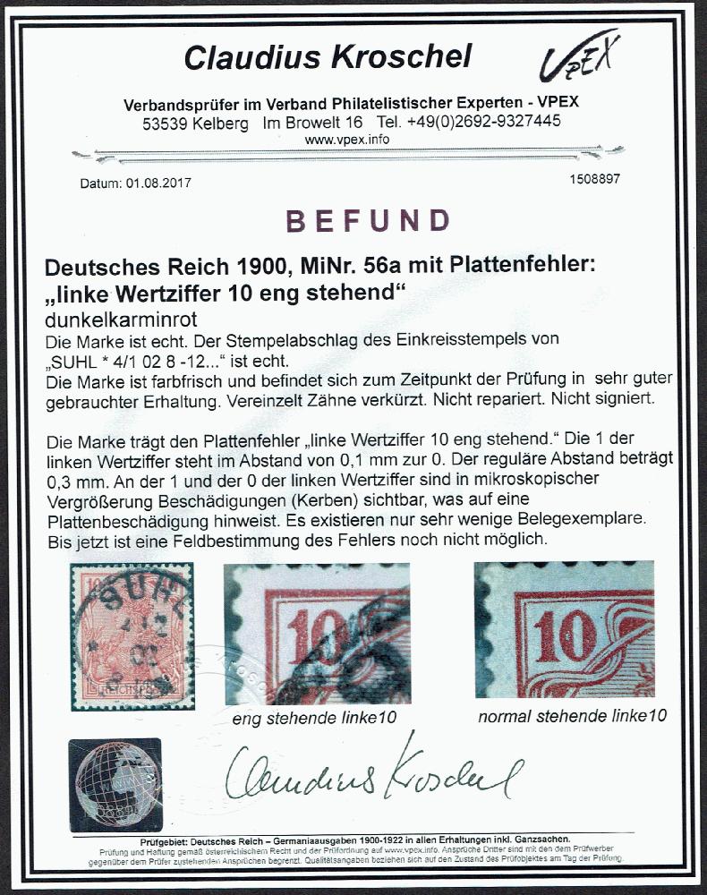 | Prüfer: | Kroschel, Claudius (VPEX (Verband Philatelistischer Experten)) |