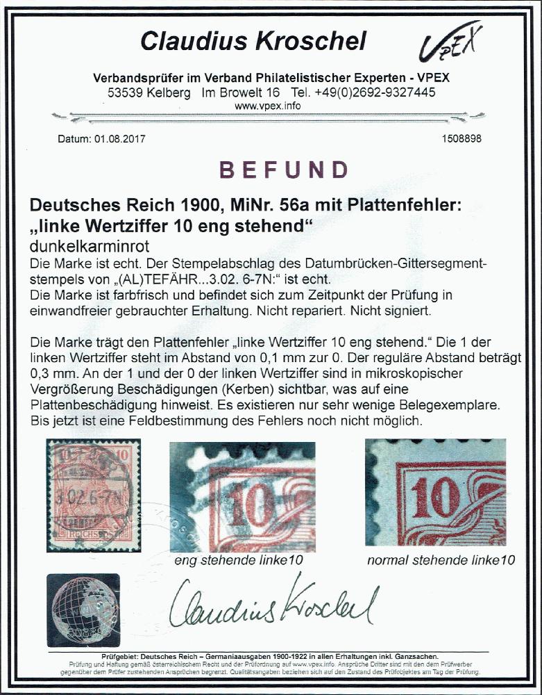 | Prüfer: | Kroschel, Claudius (VPEX (Verband Philatelistischer Experten)) |