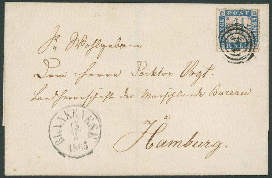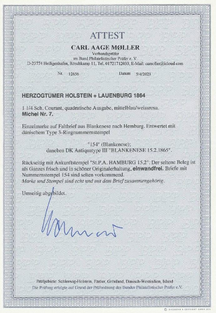 | Zusatzinformationen und Suchstichworte: | Ulrich Felzmann 178. Auktion 22. Juni 2023 Los 2634 Altdeutschland Schleswig Holstein 154 - BLANKENESE 15/2 1865, klar auf unbehandelter weißer Luxus-Faltbriefhülle mit 1¼ S in tadelloser, völlig ursprünglicher Erhaltung, nach Hamburg mit rs. Ankunft am selben Tag, Fotoattest Møller BPP "... einwandfrei. Briefe mit Nummernstempel 154 sind selten vorkommend" Ausruf 200,00 EUR |