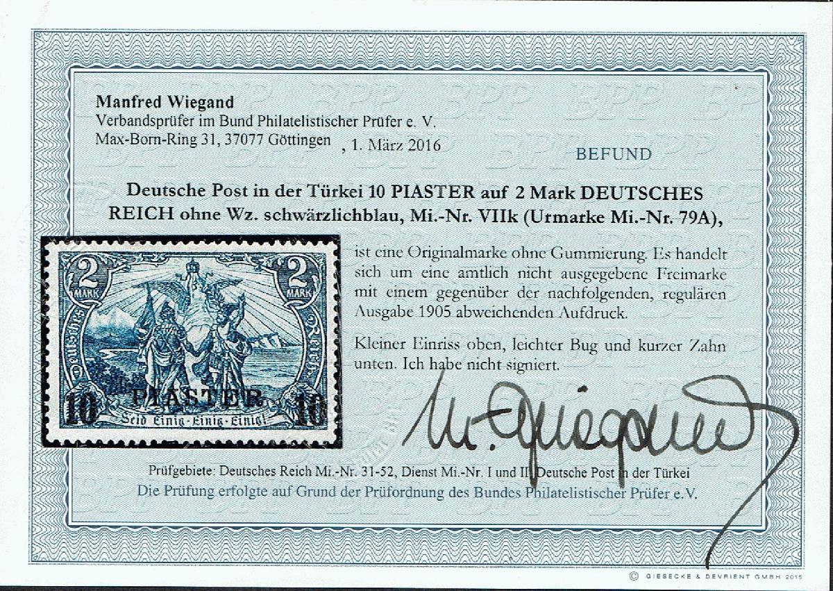 | Prüfgebiet: | Deutsche Auslandspostämter Türkei |